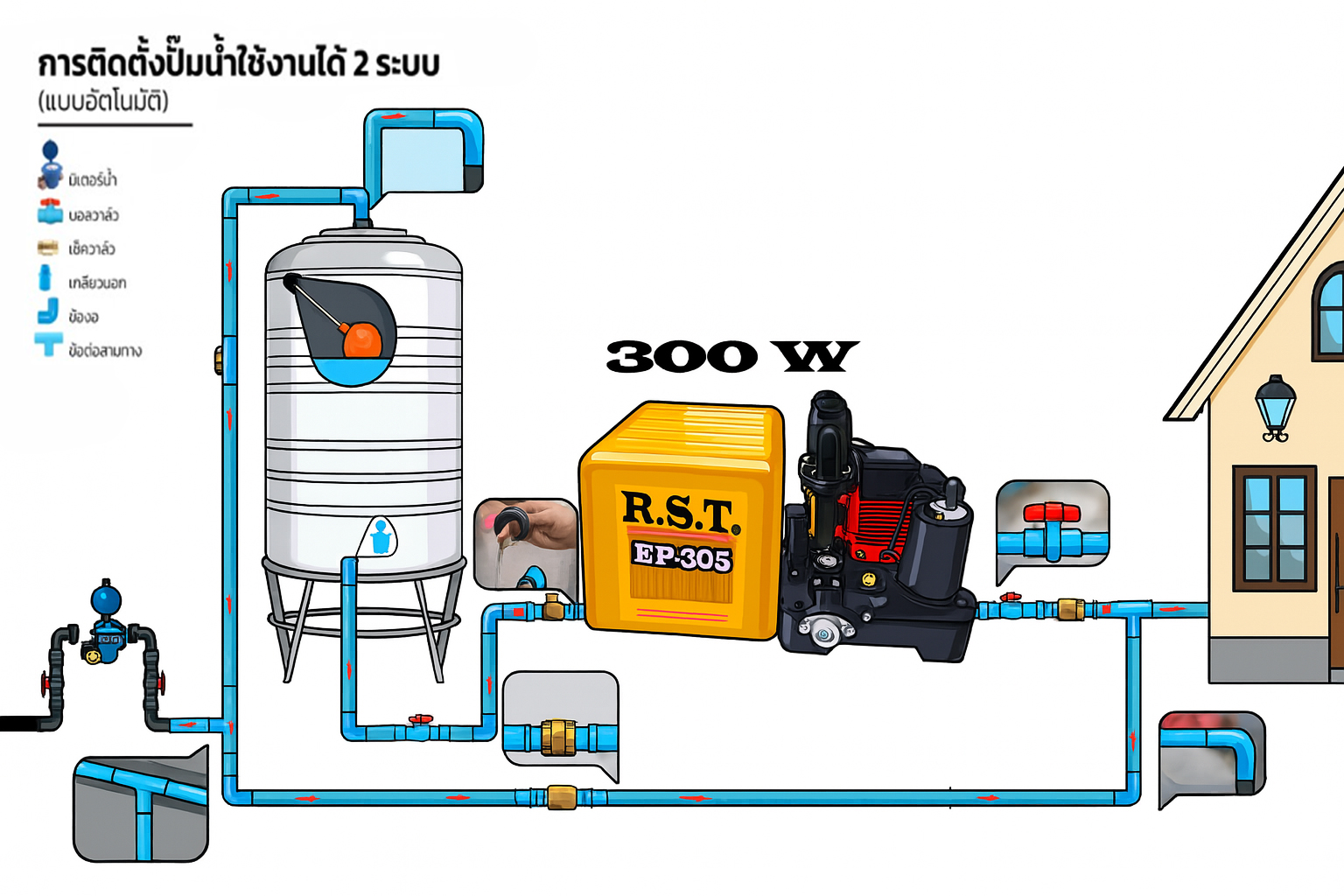 ปั๊มน้ำอัตโนมัติคงที่ 300 W # PP305 R.S.T.